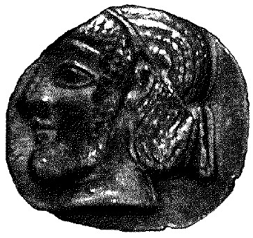 Il faut ici expliquer les raisons pour lesquelles Monsieur Deroc fait référence à un prétendu caractère "négroïde" du visage du personnage représenté au droit. Il ne s'agit pas d'une allusion raciste, le mot est cependant maladroit et je ne l'emploierai pas moi-même. Son auteur fait ici un rapprochement avec des monnaies émises à Massalia sur lesquelles figurent des visages identifiés comme ceux d'Africains en raison de leur coiffure et de certains traits marqués du visage (nez épaté et grosses lèvres). Comment expliquer la présence de portraits d'Africains sur des monnaies de Marseille du Verne siècle avant J.C.? Il semble qu'il s'agisse là d'une preuve matérielle d'un commerce antique d'esclaves d'origine africaine. Un commerce sordide et inhumain mais dont l'aspect lucratif en fait un des plus anciens au monde, et espérons qu'il disparaîtra pour toujours ! L'esclavage fut pratiqué aussi bien par les Grecs que par les Romains, il résultait principalement du commerce des prisonniers de guerre dont l'asservissement permettait de disposer d'une main d'oeuvre jugée peu coûteuse... C'était évidemment un calcul économique erroné qui ne prenait jamais en compte le coût d'une révolte généralisée comme celle de 73 avant J.C. menée par Spartacus contre Rome ! Reste que Monsieur Deroc s'est trompé dans sa lecture du visage car l'exemplaire qu'il a observé était en mauvais état de conservation. L'obole qu'il m'a été permis de photographier pour cet article présente un visage aux lèvres fines et une coiffure aux cheveux longs ondulants, et chercher ses origines avec ces traits physiques n'a aucun sens... d'autant qu'il s'agit peut-être d'un dieu, ce qui pourrait expliquer la présence de ses longues oreilles pointues, à moins qu'il s'agisse de cornes !