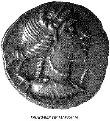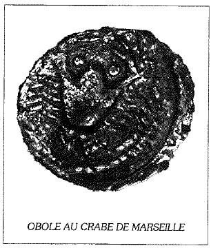 Les monnaies étudiées par ce chercheur sont de petites monnaies d'argent appelées "oboles" émises par les Salyens, un peuple gaulois qualifié de Celto-Ligures qui occupait de vastes territoires en Provence. Ce sont les Salyens qui contrôlaient la région de Marseille au Vlème siècle avant J.C. lorsque les Phocéens fondèrent un emporta, un comptoir commercial avec un port débouchant sur la baie du Lacydon, qui devint par la suite la grande cité de Massalia. Une légende charmante raconte qu'un Phocéen du nom de Protis conduisit la délégation des Grecs auprès du prince gaulois Nann. Au cours d'un banquet, la fille du roi gaulois, nommée Gyptis, présenta la coupe d'hyménée à l'élu de son coeur qui s'avéra être le jeune et beau grec Protis... Un mariage scella l'amitié entre les deux peuples et le roi Nann accorda aux Phocéens les terrains qu'ils désiraient pour établir leur colonie marchande autours de l'actuel vieux port de Marseille.