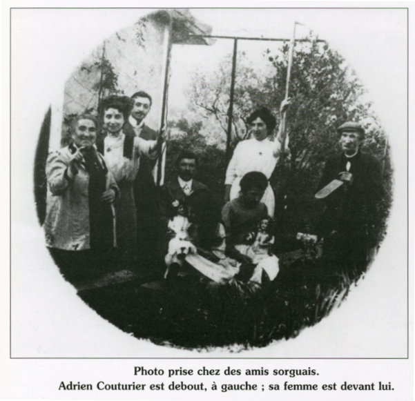 Curieusement, Adrien Couturier est connu des historiens d'arts contemporains du monde entier, non pour sa peinture, mais en sa qualité de gérant d'immeubles. Au début du vingtième siècle, il était chargé de percevoir les loyers de la villa des « Clochettes » pour le compte de monsieur Perrin. Au cours de l'année 1912, un étrange locataire s'installa à la villa, un nommé Pablo Ruiz, dit Picasso. Ce dernier peignit une fresque murale dans le salon, « détériorant le papier peint ». Pour s'éviter un procès qu'il aurait perdu, Picasso chargea son ami Braque de payer les dommages à monsieur Couturier qui lui en délivra reçu pour solde de tout compte. Bien longtemps après, cette fresque, conservée grâce au nouveau papier peint qui la recouvrait, fut détachée du mur par un amateur éclairé et elle fut vendue. Monsieur Fustier, qui fut longtemps instituteur dans notre commune, racontait volontiers avoir vu cette œuvre, au cours de l'année 1955, dans une galerie parisienne.