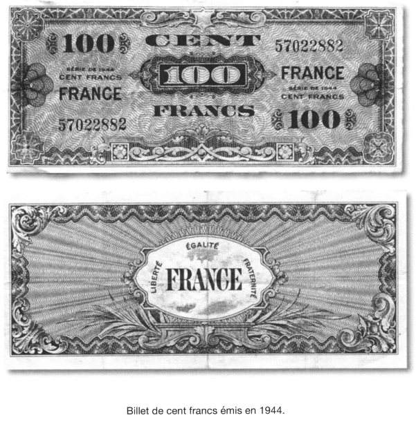 À l'approche du débarquement du juin 1944 sur les côtes françaises, l'autorité américaine, qui refusait de reconnaître le Comité français de Libération Nationale présidé par le général de Gaulle comme le gouvernement français, décida d'émettre des billets de banque pour remplacer ceux mis en circulation durant l'occupation.