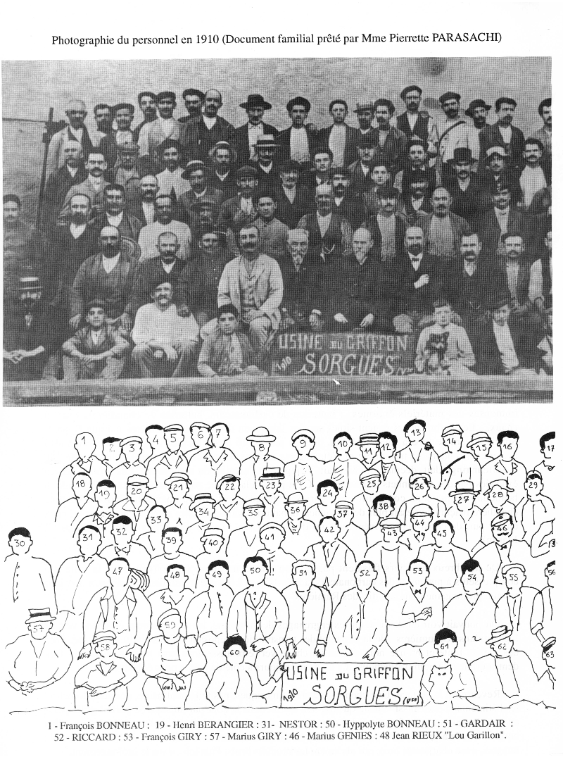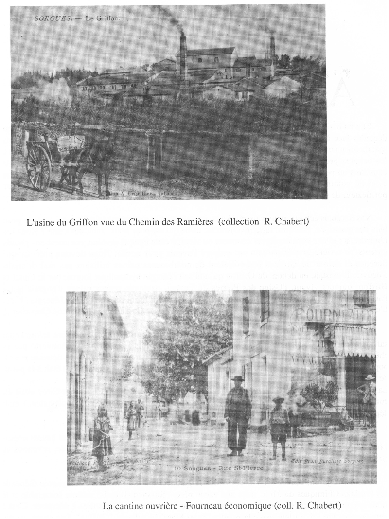 Aujourd'hui disparue, l'usine dite du Griffon donnait à notre ville le travail, donc la vie, à un bon nombre de familles sorguaises.