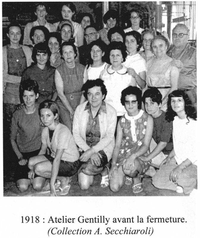 Sur la photo de groupe en 1918, nous pouvons reconnaître, au l' rang, de gauche à droite : Annie Secchiaroli, Lucienne Gilabert, Mme Guichard, surveillante, Danièle X, Marie-Angèle X, X -au 2ème rang : Mlle Mingaro, Mme Castillo, X, Eglantine Luis - 3ème rang : Annie Belchi, X, Joséphine Pudico, Elisabeth Oligiéri, M. Toulouse, Simone X, X, Marie Planque, Juliette Establet, M. Guichard, contremaître.
