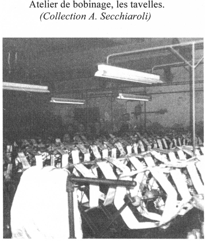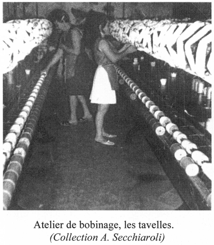 3) le moulinage (7) : il est effectué par un personnel exclusivement féminin dans les ateliers de Gentilly et du Ronquet.