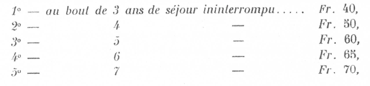 1- Un salaire en nature comprenant la nourriture, les jours de travail ainsi que les dimanches el jours fériés, comprenant aussi le blanchissage du linge de corps, le tout estimé par jour de travail, à Francs : 0,90 .