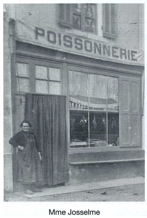 En 1919, M. et Mme Josselme créèrent, impasse de l'Orme, un magasin de vente de poissons, d'eau douce et de mer, de gibiers et de volailles. L'hiver, le mari exposait le gibier sur la face extérieure du commerce. Toute l'année, il parcourait le village en poussant son charreton chargé de poissons et il annonçait sa venue au moyen d'une corne faite d'un gros coquillage. Les habitants, alertés par l'appel, sortaient et se groupaient autour du vendeur. Ainsi, souvent, il lui arrivait de conseiller les ménagères sur la façon de cuisiner leur achat. Ces réunions, occasionnées par l'acquisition du poisson et la liberté des discussions, étaient un moment de convivialité et de bonne humeur.