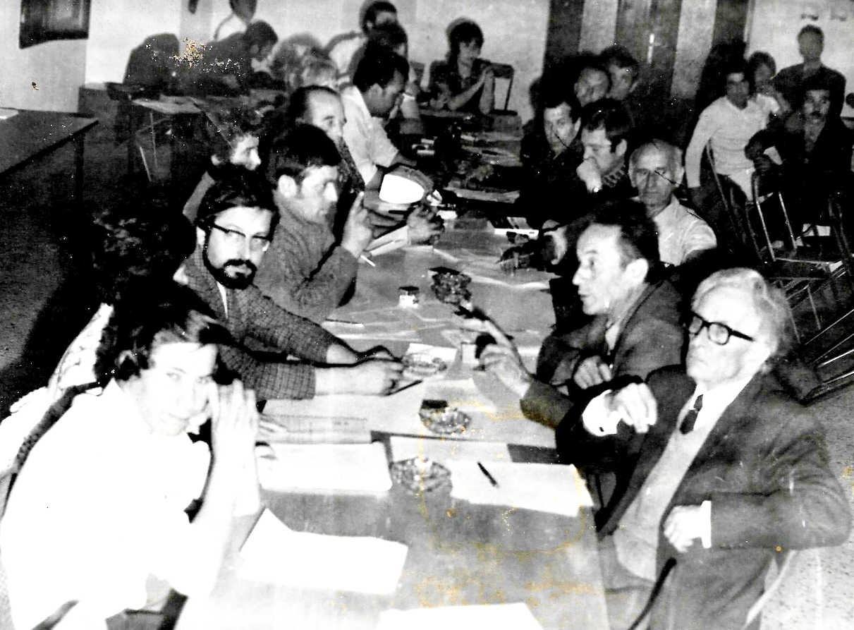 Légende : Ce cliché date de mai 1971. Au côté droit, au début, Marcel Rayne, suivi de Roger Ricca et de Théo Pézelier, à gauche en troisième position Jean Candel et en suivant le front de Marcel Nouzier.