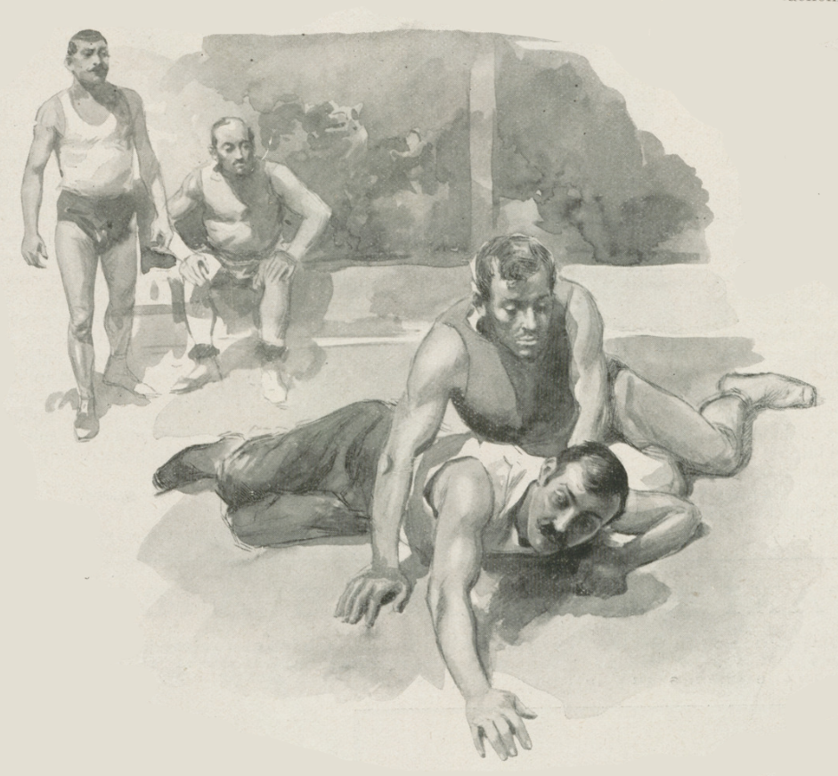 - Dis donc, me dit-il, tu as vu le type tout à l'heure qui a demandé un gant pour toi. Fais attention, il va t'en mettre un coup à la bourre, il lutte bien, et c'est une rosse, tâche de ne pas aller sur le dos ; ça m'embêterait s'il tombait quelqu'un d'ici."