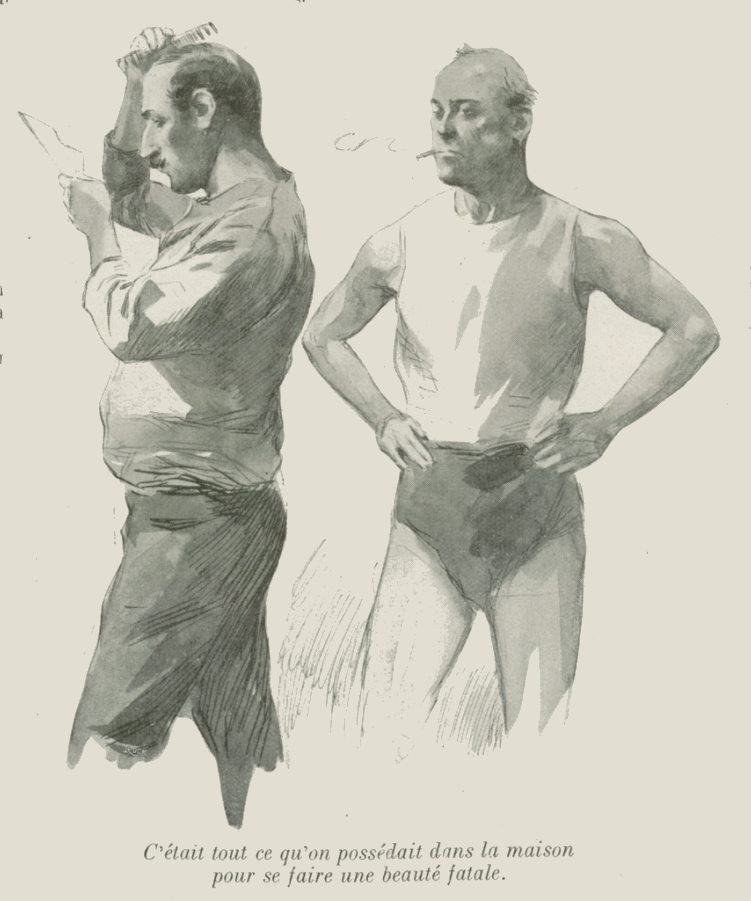 La troupe de Mange-Matin s'habillait dans la baraque même. Quinze centimètres de débris de glace servaient à se mirer et l'on se repassait, de main en main, un fragment de peigne édenté qui servait à la communauté pour rappeler à l'ordre les chevelures récalcitrantes. C'était tout ce qu'on possédait dans la maison pour se faire une beauté fatale.