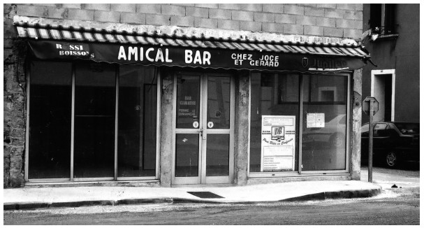 Aussi buvait-on de bons « Pernod », quelques « Suze », de la bière de Ruoms, des liqueurs ; pour quelques originaux, c’était de la limonade. Les fenêtres du bar donnaient directement sur la route nationale sept : de là, on voyait plus de bleus de travail que d’habits du dimanche, les familiers n’étaient pas riches mais contents de leur condition. On y fumait beaucoup, la salle était obscurcie par la fumée très odorante du « gris » qui était soit roulé, soit brûlé dans des pipes.
