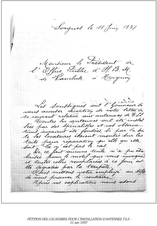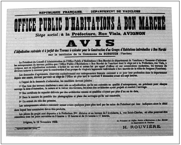 La requête fut sans effet sur le conseil d’administration de l’office, l’entreprise Martin, à Avignon, fut adjudicataire des travaux de construction.