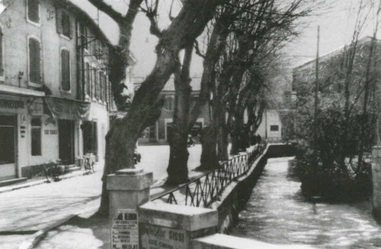 Le cours de la République vers 1956 pour la photo du haut et vers 1934 pour celle du bas. Le canal de Vaucluse est à ciel ouvert. Il a été couvert vers 1960, l'ancienne usine désaffectée a été remplacée par des magasins et des appartements. Les platanes ont été abattus, ce qui a permis le réaménagement des trottoirs et de la chaussée.