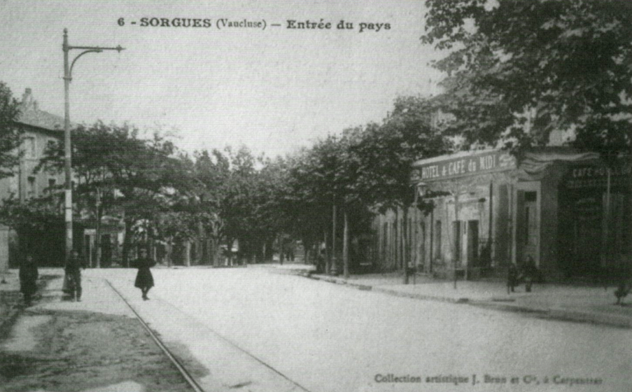 L'entrée de Sorgues au niveau de l'hôtel Central qui était «Hôtel et café du Midi» au début du vingtième siècle.