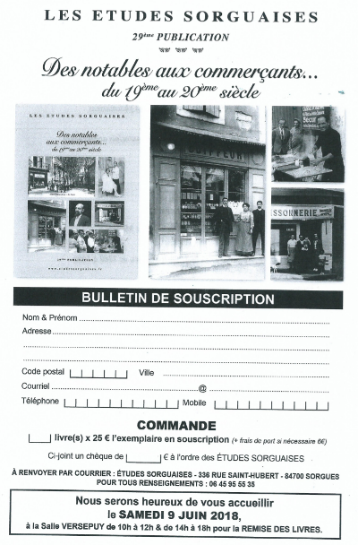 Il faut rappeler à nos lecteurs que nos recherches ont contribué à la connaissance de faits enterrés par la vie quotidienne, notamment l'atelier monétaire de Pont de Sorgues au moyen âge, les inondations de 1840 dans l'île d'Oiselay, au début du vingtième siècle, le sort douloureux des orphelines qui travaillaient à l'usine Bouscarle, la venue à Sorgues de Braque et Picasso qui marqua le début de la peinture moderne, en même temps la présence du poète Pierre Reverdy 1() qui écrivit un roman « le Voleur de Talan ».