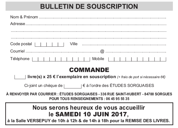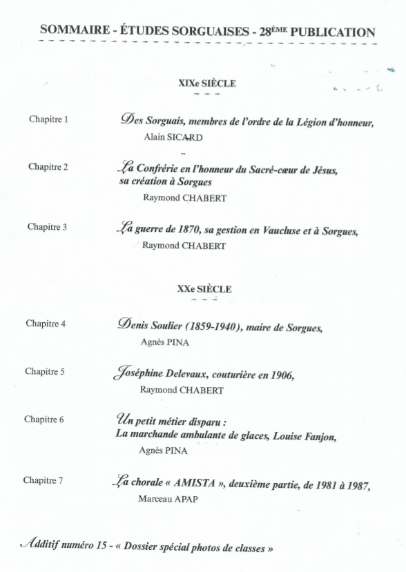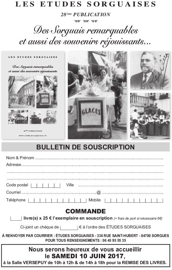 La sortie de la 28ème édition des études sorguaises est prévue le 10 juin 2017 : en voici le sommaire.