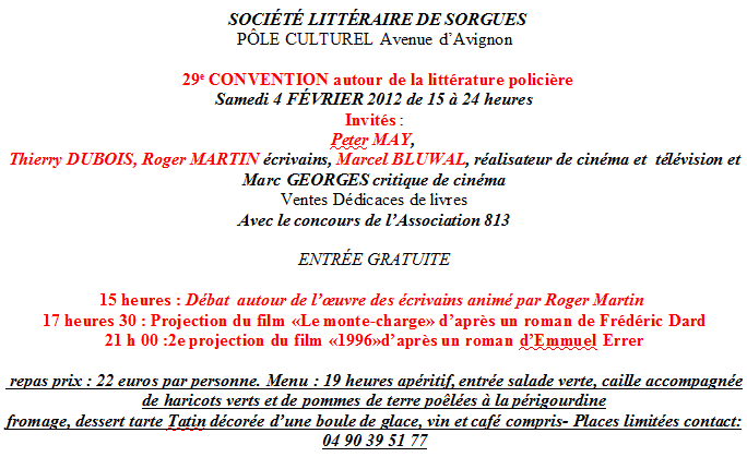 La Société Littéraire de Sorgues Fondée le 1 avril 1832 par Jean Joseph Ducrès 04.90.39.10.88 / 06.78.26.56.16 propose Vendredi 6 janvier à 19 h une VEILLEE