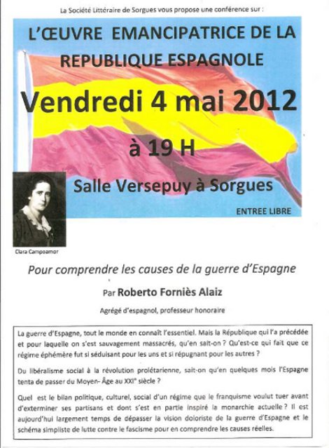 - VENDREDI 4 MAI à 19 h Salle Versepuy « L’ESPAGNE » Robert Forniés Alaïs (à confirmer)
