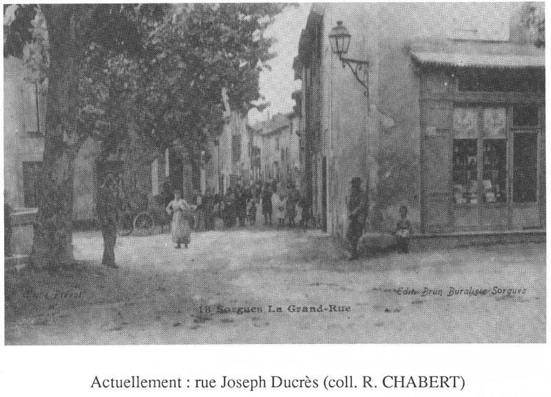 Monsieur et Madame DUCRES arrivent à pied à SORGUES (seuls les riches ont pour se déplacer charrettes et chevaux) par le chemin de Bédarrides. Ils traversent au nord du Bourg des jardins embaumés par les aubergines et les melons. Ils ont pour tout bagage. quelques hardes dans un mouchoir au bout d'un bâton sur l'épaule. Le village à cinq lieues au nord d'Avignon s'étale le long de la "route Royale", enfermé par de belles murailles. Des maisons anciennes sont groupées autour d'une Eglise massive (19). L'économie dominée par l'agriculture, est encore d'Ancien Régime. La production industrielle n'est qu'artisanale. Outre des martinets pour le cuivre (20), il existe deux papeteries, celle de LEGIER, occupant huit ouvriers, et celle de ROUSSAS occupant quatre ouvriers chaque année, ainsi que deux moulins à huile ceux de MONNIER et RIGAU occupant chacun cinq ouvriers pendant un ou deux mois (21). Le Maître et son Epouse élisent domicile* à la Grand'Carriero (22).