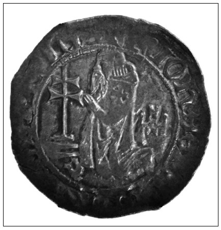 Une telle monnaie existe ! C’est le Gigliato frappé à Rhodes entre 1377 et 1396, Juan Fernandez de Heredia (1310-1396), dont voici la description et la photographie :