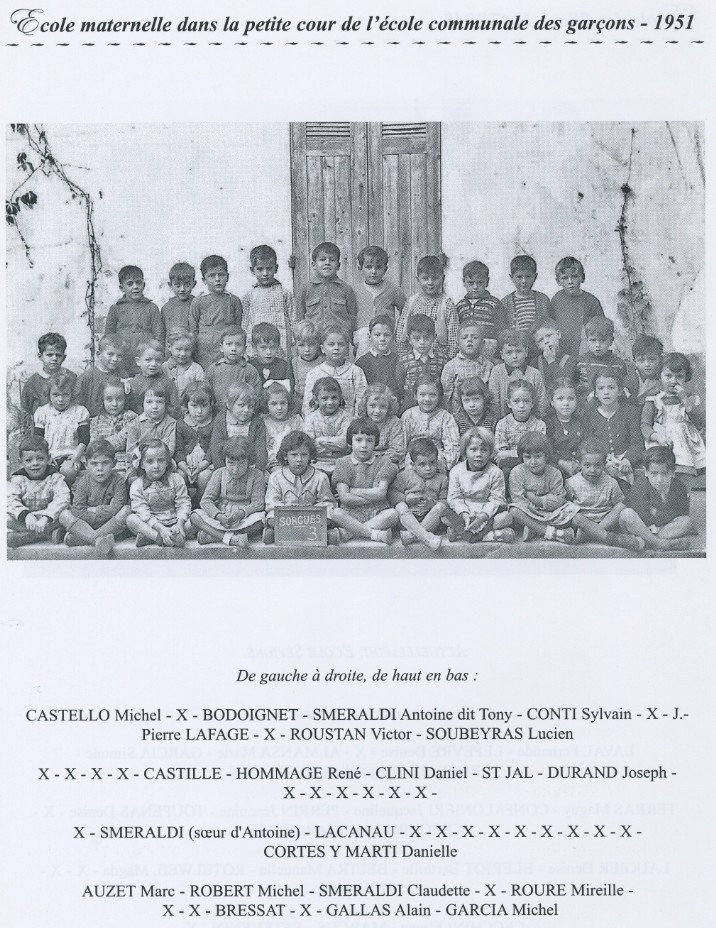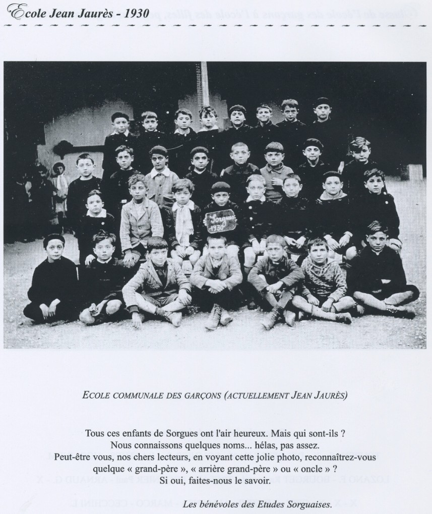 Ci-contre, vous trouverez une série de reproductions de photos scolaires extraites de la 23ème édition des Etudes Sorguaises "Jadis & aujourd'hui, recherches & récits" publiée en 2012. Sont principalement représentées les écoles Sévigné et Jean-Jaurès.