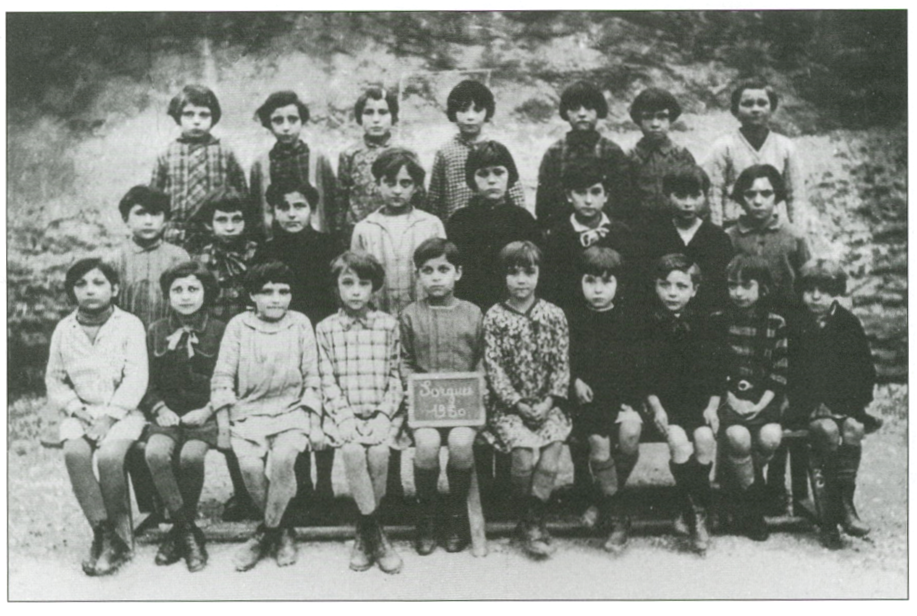 Monsieur Robert Establet a retrouvé cette photo en mauvais état mais qui témoigne bien de cette époque, avec les écolières ayant toutes une blouse.