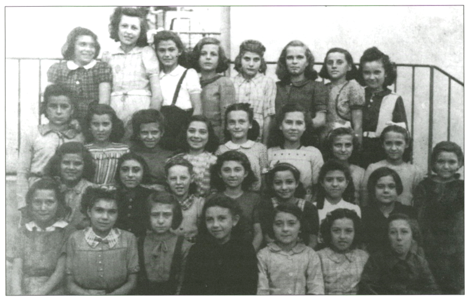 1er rang, assises : Marie-Rose Morel, Simone Boccéda, Altabella, Raymonde Rolland, Renée... (avec l'ardoise), Yvette Ranquet/Petit, Paulette Bonnet, Yvette Cloupet, X, Thérésa Desseinge/Marini.